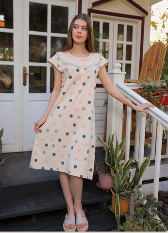 استمتعي بليالي صيفيّة هادئة مع قميص نوم قطني ناعم يلامس بشرتك بلطف. صُمّم بطول قصير وكمّ ربع ليمنحك إحساسًا بالانتعاش والراحة طوال الليل. يتميّز بألوانه المشرقة ولمساته الشاعريّة الرقيقة التي تضفي أنوثة وهدوءًا على إطلالتك....