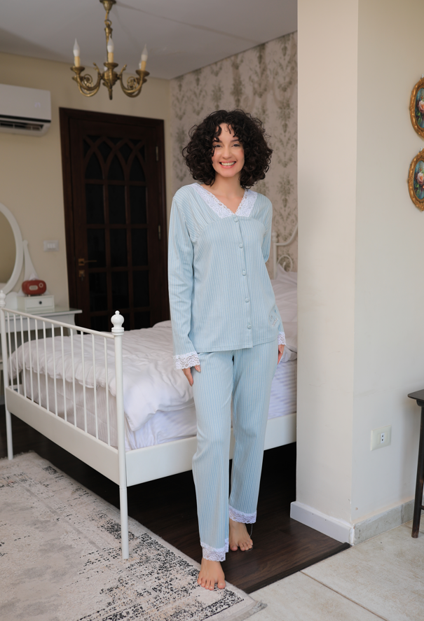 بيجامة تُغلفك بدفء يشبه أول معانقة بعد غياب، ناعمة كنسمة محمّلة بالسكينة.