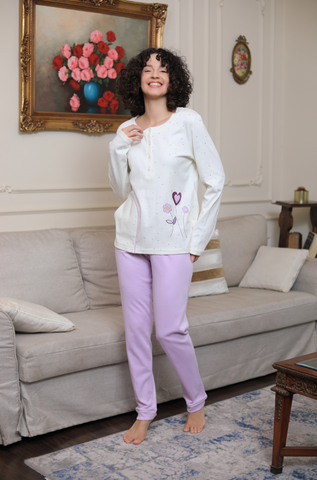 "راحة ملكية" هو تعبير يجمع بين الفخامة والدفء، ليعكس إحساس البيجامة الشتوية التي تمنحك نعومة لا تُقاوم ودفئًا يغمر جسدك، وكأنك تستمتعين بلحظات استرخاء ملكية في أيام البرد.
