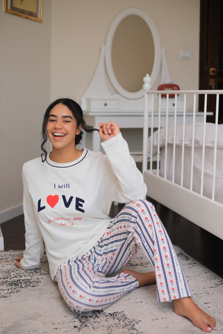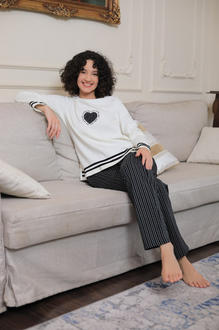 بيجامة تنساب عليكِ كغفوةٍ خفيفة تهبط على قلبك قبل جسدك، تحمل دفئًا هادئًا يذيب برد الشتاء دون جهد. ملمسها الناعم يلتفّ حولك بلطفٍ يشبه حضنًا مطمئنًا، يهدّئ اللحظة ويُنعم المساء. ألوانها الهادئة تمنحك شعورًا يشبه...