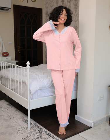بيجامة تنعم عليكِ كنسيمٍ خفيف يمرّ في ليلة شتوية هادئة، تحمل إليك دفئًا يهدّئ الروح قبل الجسد. ملمسها الناعم يلتف حولك كغلالة سلام، يبدّد برد المساء ويمنحك شعورًا لطيفًا بالطمأنينة. بتدرجاتها الهادئة وخطوطها الرقيقة، تصبح...
