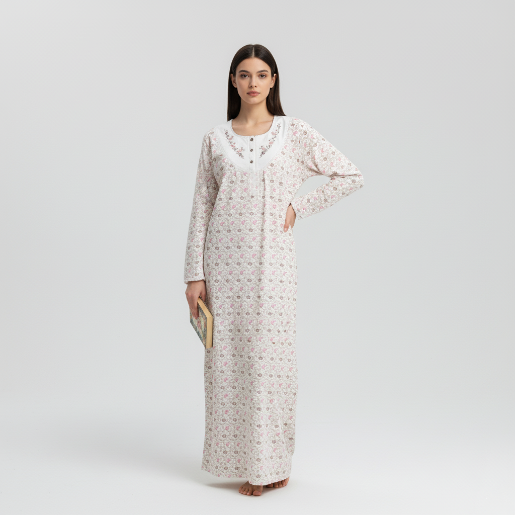 عباية شتوية تنثر سكينة دافئة مع كل خطوة، تزيّنها نقوش ناعمة كزهرٍ يحتفظ بوهجه رغم برودة الشتاء. ينساب قماشها الثقيل برفق، مانحًا إحساسًا بالاحتواء، وكأنك ترتدين حضنًا دافئًا يتعطر بلمسة أنوثة هادئة لا تُقاوم.
